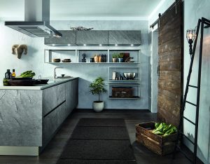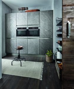 Takie fronty pasują do okazałych, ogromnych pomieszczeń którym potrzebna jest konkretna aranżacja i przemyślane rozwiązania, jak również nie przytłoczą swoim ciężarem małych kuchni. Są uniwersalnym pomysłem dla każdego wnętrza. Doskonale wyglądają w połączeniu z bielą, szarością lub brązem, jakie można zleźć na ścianach czy podłogach w kuchni, a także z betonowymi blatami. Można do nich dobrać wzorzystą, stonowaną tapetę. Która przełamie surowy wygląd kamienia.