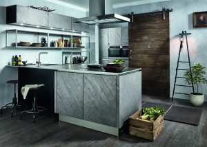 inną na całej powierzchni. Kolejnym, równie eleganckim, rozwiązaniem jest laminat imitujący kamień, jest nieodróżnialny od naturalnego. Poza tym trwały i wygodny w użytkowaniu. Mając fronty kamienne umieszczamy w swojej kuchni namiastkę naturalnego surowca który podobnie jak drewno może być niepowtarzalny. Najczęściej w kolorach szarości, grafitu czy czerni.
